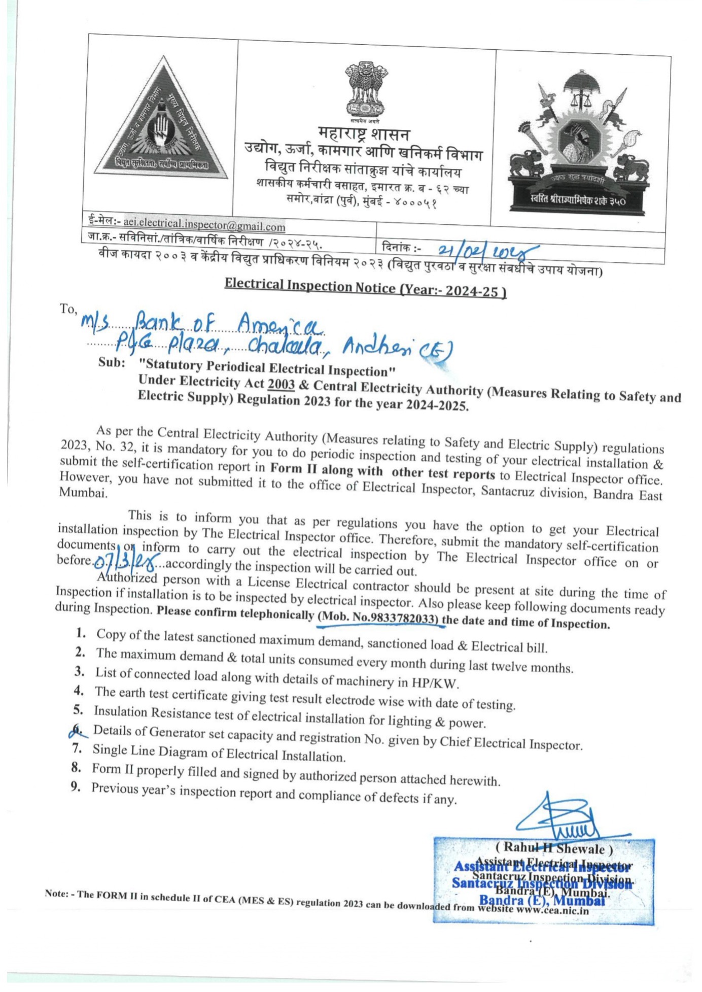 We are licensed electrical contractors approved by the Maharashtra Government, authorized to carry out statutory inspections, certifications, and compliance audits for all types of residential, commercial, industrial, and institutional establishments.